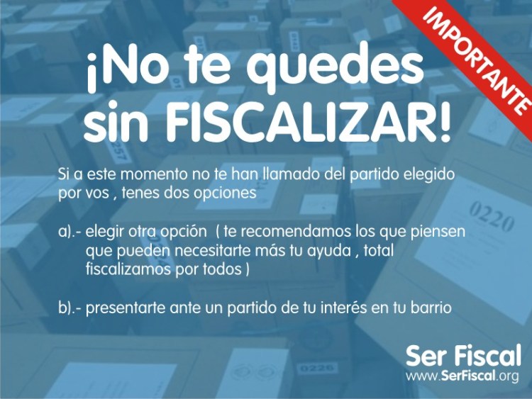 Como si todo esto fuera poco, los partidos políticos necesitan poner en funcionamiento desde varios meses antes de cada elección una maquinaria de fiscalización que es un trabajo de organización enorme y extremadamente difícil, justamente para cubrir esa lavada de manos del Estado que no cuida los votos de los argentinos. Quiero explicarme bien: el trabajo de los fiscales es conmovedoramente abnegado y su rol en la protección de la democracia es infinito, pero es una tarea que tendría que ser radicalmente más simple. Y ni siquiera estoy hablando de las patotas y las escuelas tomadas por grupos políticos.